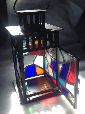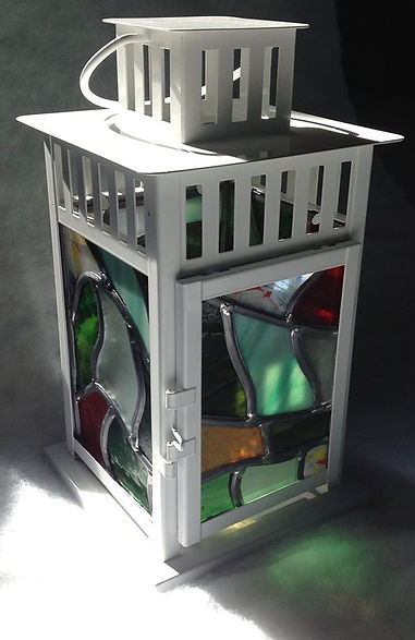 Je décline sous forme de lampe le vitrail, mais cela peut évoluer sous d'autres créations. Je réalise également depuis plus de cinq ans des peintures contemporaines en acrylique sur support coton ou vinyle.
